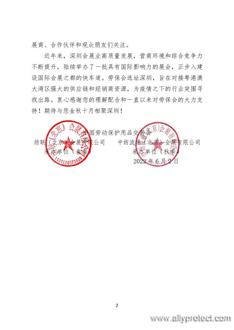 尊敬的勞保會參展商、合作伙伴以及勞保行業的觀眾朋友們: