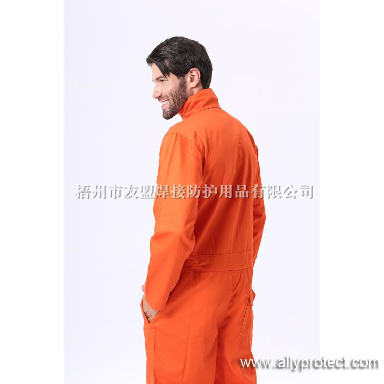 - 產品描述: 橙色連體防火阻燃服,可水洗不縮水,推薦適用于燒焊、鑄造、化工、石油、機電等有火焰或火警的危險行業。